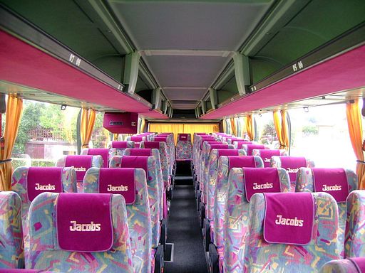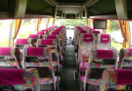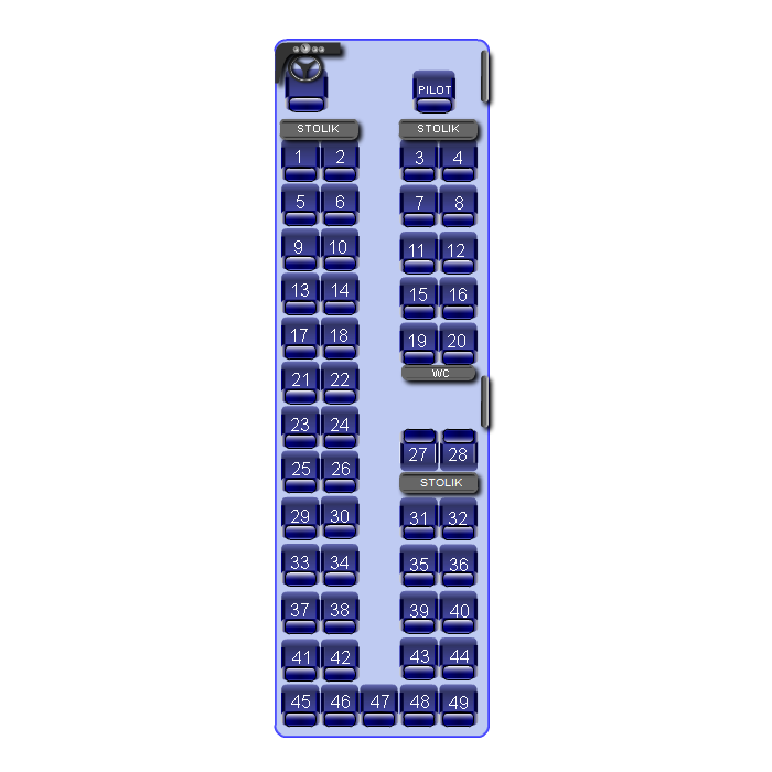 - miejsc siedzących 49+2+1 - CD, - DVD - dwa monitory - mikrofon, - siedzenia rozkładane na boki i do tyłu, - podnóżki pod stopy, - lodówka x 2 - toaletę, - klimatyzację, - barek, - ogrzewanie postojowe, - wysoki pokład, - indywidualne nawiewy, - lampki do czytania, - stoliki i podłokietniki, - bagażnik na narty,
